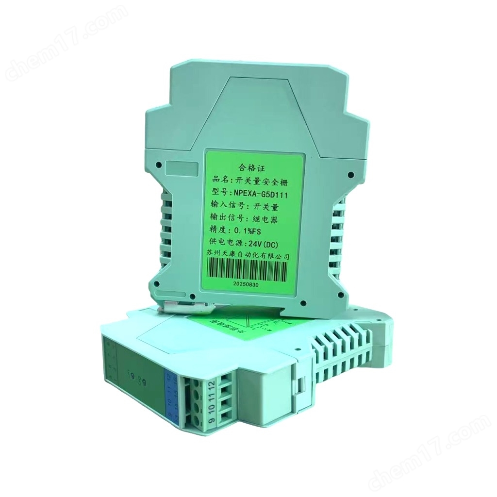 目錄:蘇州天康自動化有限公司>>隔離安全柵系列>>開關量安全柵>> KN5011開關量隔離安全柵一進一出